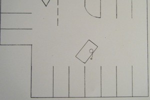 “Ok, What I would like you to do is the Bay Park exercise. If you would like to drive forward and to the right until your wheels are straight. Then I would like you to reverse back into one of the bays. Try not to hit the kerb”.