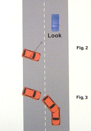 - Once you have reached full lock and are waiting for the car to creep round you should switch your observations to over your right shoulder.